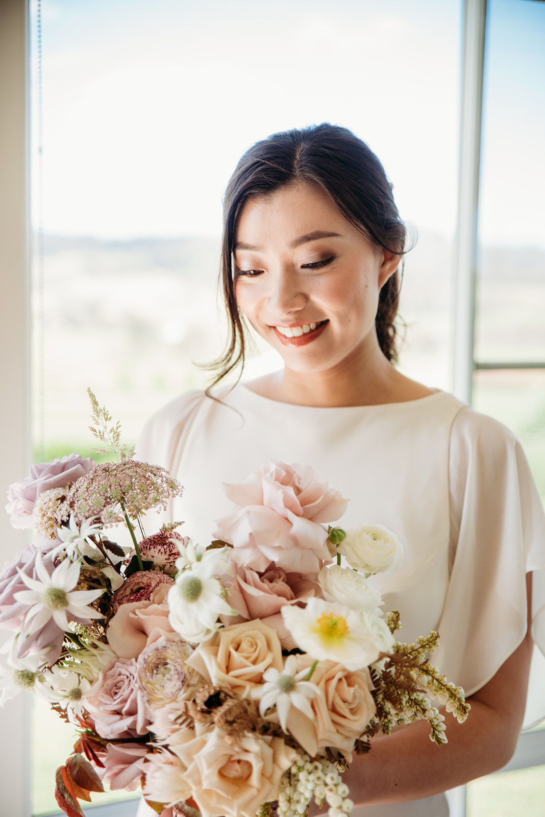 Kat + Ed chose to get married at Ed’s families Farm in Nowendoc, NSW. The property had lush gardens surrounds and their ceremony was held in the centre. Florals were lush whites with a touch of peach and lavender, an extension of the colours seen throughout the grounds.